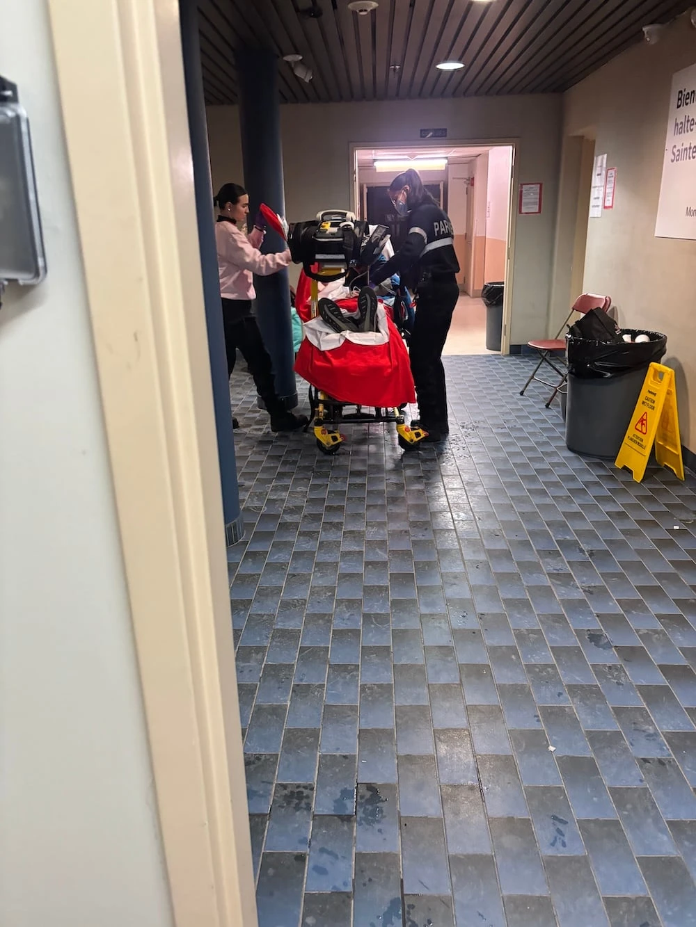 Des cris d’horreur surgissent des toilettes dans le couloir. Un homme semble forcer dans une douleur extrême. Finalement, c’est pire que ça. L’ambulance finit par venir le chercher.