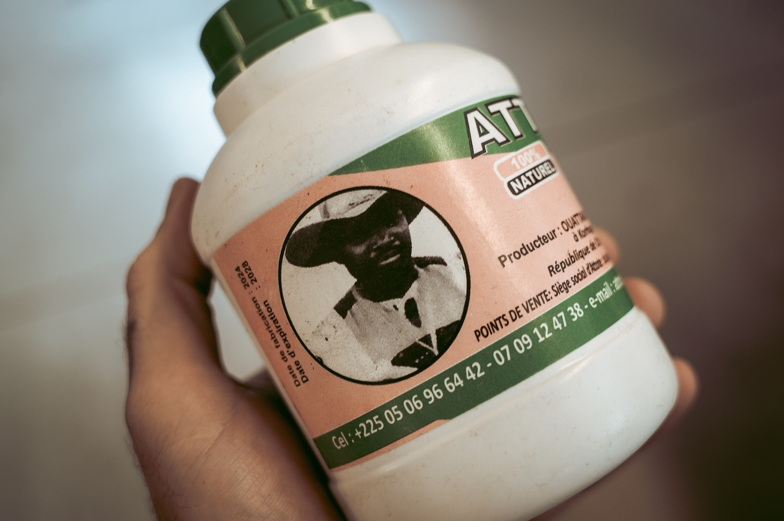 Sur chaque bouteille, un visage. Celui de Djakaridja Ouattara, l’homme censé détenir la formule. Originaire de Korhogo, au nord de la Côte d’Ivoire, il a vu son breuvage franchir les frontières en quelques années, jusqu’à recevoir une médaille du mérite national pour le succès commercial d’Attoté, un exploit rarissime pour un produit sexuel.