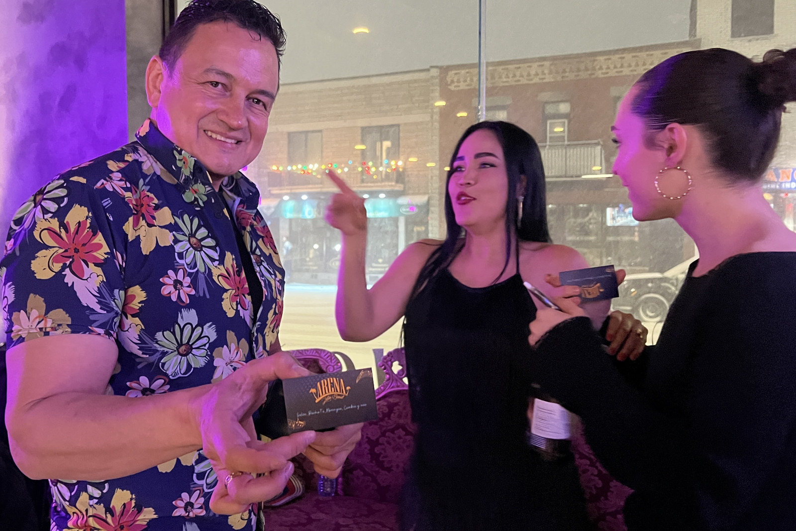 Ce soir, c’est le Arena Latín Band qui assure l’ambiance musicale. Avec mon interprète, je profite de leur pause pour discuter avec les membres du groupe.